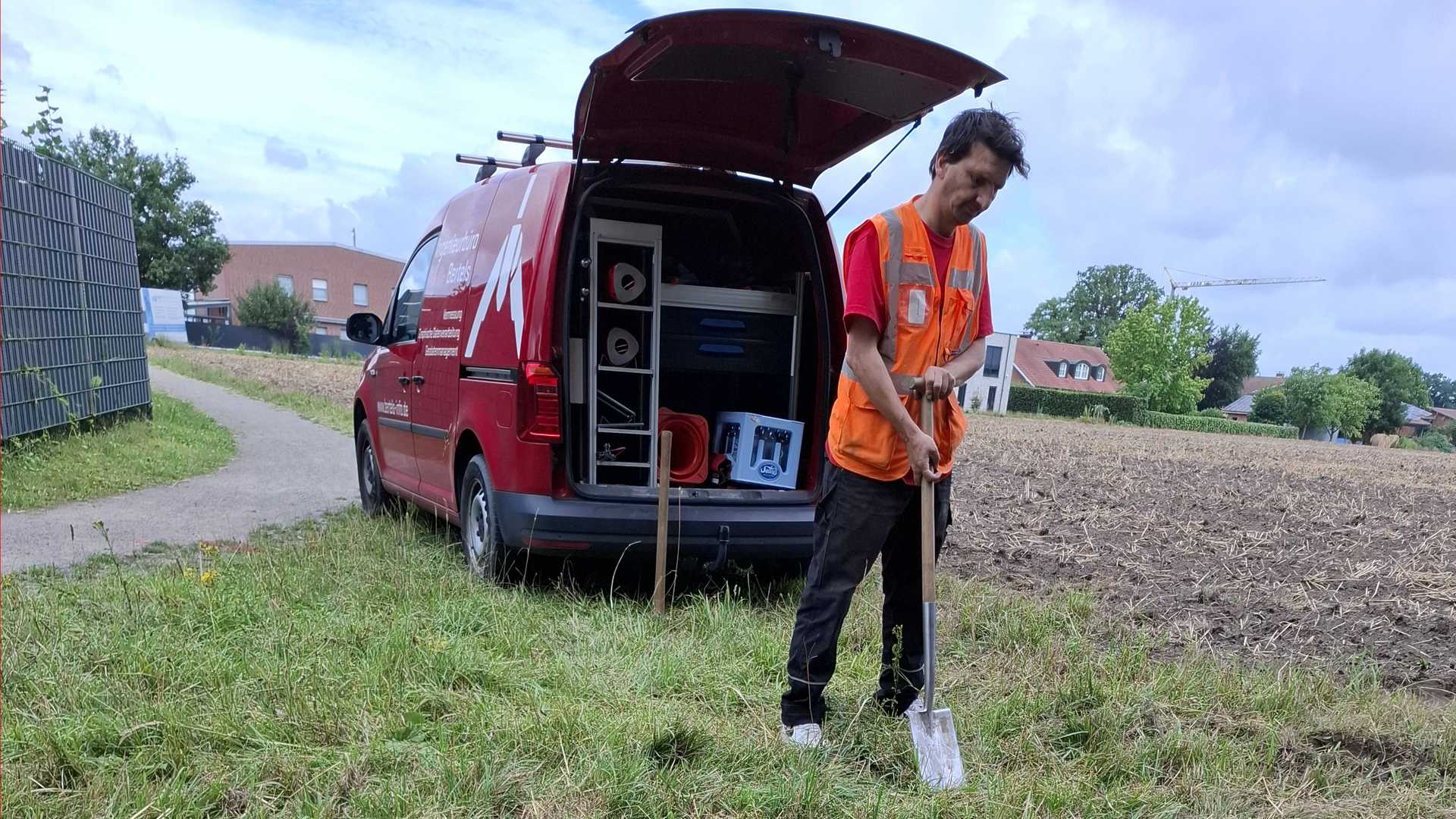 Herausfordernd waren die Messungen an der K50 welche im fließenden Verkehr durchgeführt wurden. Die Schachtdeckel liegen auf der Fahrbahn und mussten jeweils einzeln abgesichert werden. Hierfür wurde entsprechend der verkehrsrechtlichen Anordnung des Kreises Warendorf ein Sicherungsfahrzeug auf der Fahrbahn platziert und der Schacht jeweils noch mit zusätzlicher Verkehrssicherung versehen.