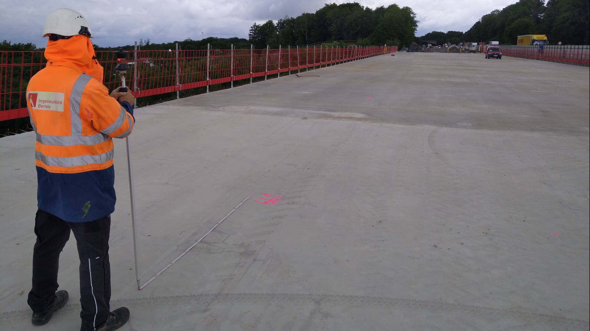 Für die weitere vermessungstechnische Begleitung des Ersatzneubaus, wird als nächstes durch das Team Bertels ein geodätisches Festpunktfeld angelegt.